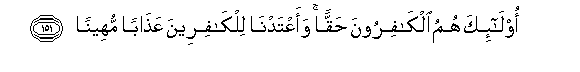 151. Ola-ika humu alkafiroona haqqan waaAAtadna lilkafireena AAathaban muheenan