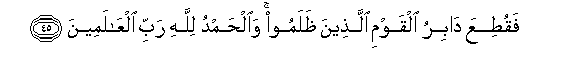 45. FaqutiAAa dabiru alqawmi allatheena thalamoo waalhamdu lillahi rabbi alAAalameena