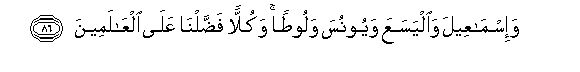 86. Wa-ismaAAeela wailyasaAAa wayoonusa walootan wakullan faddalna AAala alAAalameena