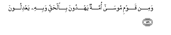 159. Wamin qawmi moosa ommatun yahdoona bialhaqqi wabihi yaAAdiloona