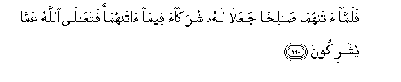 190. Falamma atahuma salihan jaAAala lahu shurakaa feema atahuma fataAAala Allahu AAamma yushrikoona