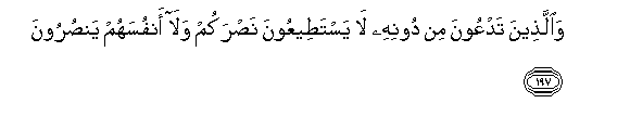 197. Waallatheena tadAAoona min doonihi la yastateeAAoona nasrakum wala anfusahum yansuroona