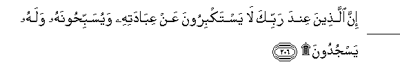 206. Inna allatheena AAinda rabbika la yastakbiroona AAan AAibadatihi wayusabbihoonahu walahu yasjudoona