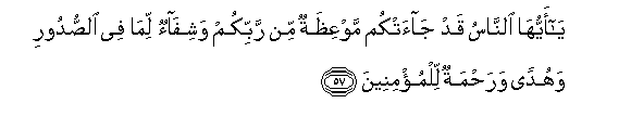 57. Ya ayyuha alnnasu qad jaatkum mawAAithatun min rabbikum washifaon lima fee alssudoori wahudan warahmatun lilmu/mineena