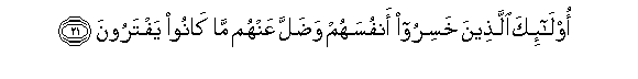 21. Ola-ika allatheena khasiroo anfusahum wadalla AAanhum ma kanoo yaftaroona