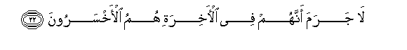 22. La jarama annahum fee al-akhirati humu al-akhsaroona