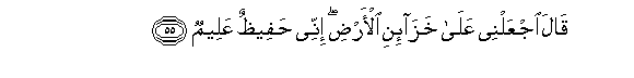 55. Qala ijAAalnee AAala khaza-ini al-ardi innee hafeethun AAaleemun