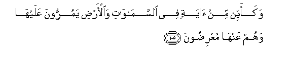 105. Wakaayyin min ayatin fee alssamawati waal-ardi yamurroona AAalayha wahum AAanha muAAridoona