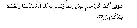 25. Tu/tee okulaha kulla heenin bi-ithni rabbiha wayadribu Allahu al-amthala lilnnasi laAAallahum yatathakkaroona