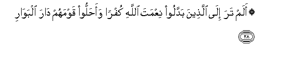 28. Alam tara ila allatheena baddaloo niAAmata Allahi kufran waahalloo qawmahum dara albawari