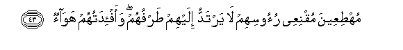 43. MuhtiAAeena muqniAAee ruoosihim la yartaddu ilayhim tarfuhum waaf-idatuhum hawa/on