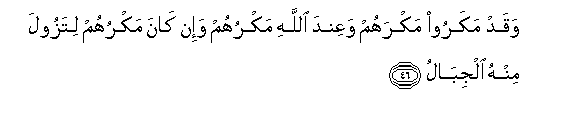 46. Waqad makaroo makrahum waAAinda Allahi makruhum wa-in kana makruhum litazoola minhu aljibalu