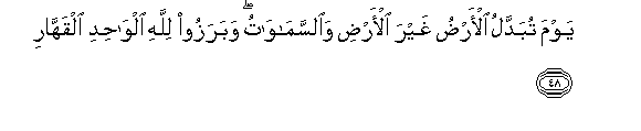 48. Yawma tubaddalu al-ardu ghayra al-ardi waalssamawatu wabarazoo lillahi alwahidi alqahhari