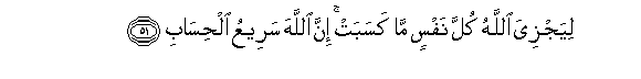 51. Liyajziya Allahu kulla nafsin ma kasabat inna Allaha sareeAAu alhisabi