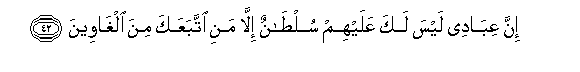 42. Inna AAibadee laysa laka AAalayhim sultanun illa mani ittabaAAaka mina alghaweena