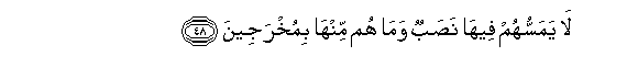 48. La yamassuhum feeha nasabun wama hum minha bimukhrajeena