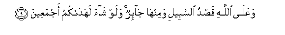 9. WaAAala Allahi qasdu alssabeeli waminha ja-irun walaw shaa lahadakum ajmaAAeena