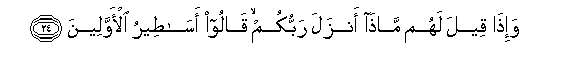 24. Wa-itha qeela lahum matha anzala rabbukum qaloo asateeru al-awwaleena