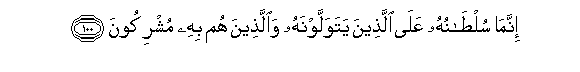 100. Innama sultanuhu AAala allatheena yatawallawnahu waallatheena hum bihi mushrikoona