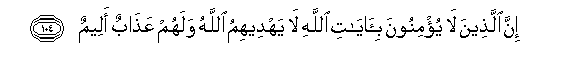104. Inna allatheena la yu/minoona bi-ayati Allahi la yahdeehimu Allahu walahum AAathabun aleemun