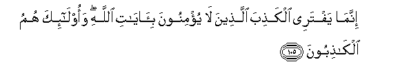 105. Innama yaftaree alkathiba allatheena la yu/minoona bi-ayati Allahi waola-ika humu alkathiboona
