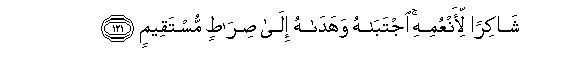 121. Shakiran li-anAAumihi ijtabahu wahadahu ila siratin mustaqeemin