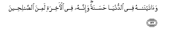 122. Waataynahu fee alddunya hasanatan wa-innahu fee al-akhirati lamina alssaliheena