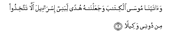 2. Waatayna moosa alkitaba wajaAAalnahu hudan libanee isra-eela alla tattakhithoo min doonee wakeelan