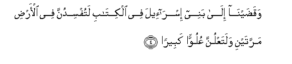 4. Waqadayna ila banee isra-eela fee alkitabi latufsidunna fee al-ardi marratayni walataAAlunna AAuluwwan kabeeran