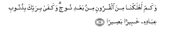 17. Wakam ahlakna mina alqurooni min baAAdi noohin wakafa birabbika bithunoobi AAibadihi khabeeran baseeran
