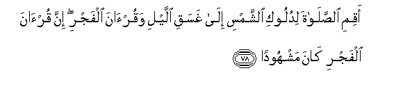 78. Aqimi alssalata lidulooki alshshamsi ila ghasaqi allayli waqur-ana alfajri inna qur-ana alfajri kana mashhoodan