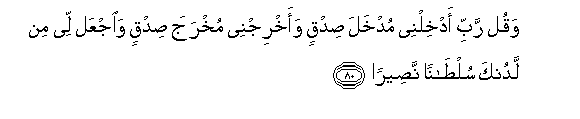 80. Waqul rabbi adkhilnee mudkhala sidqin waakhrijnee mukhraja sidqin waijAAal lee min ladunka sultanan naseeran