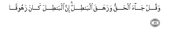 81. Waqul jaa alhaqqu wazahaqa albatilu inna albatila kana zahooqan