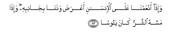 83. Wa-itha anAAamna AAala al-insani aAArada wanaa bijanibihi wa-itha massahu alshsharru kana yaoosan