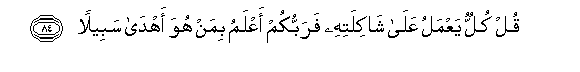 84. Qul kullun yaAAmalu AAala shakilatihi farabbukum aAAlamu biman huwa ahda sabeelan