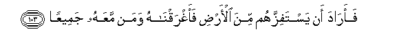103. Faarada an yastafizzahum mina al-ardi faaghraqnahu waman maAAahu jameeAAan