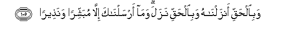 105. Wabialhaqqi anzalnahu wabialhaqqi nazala wama arsalnaka illa mubashshiran wanatheeran
