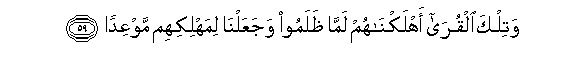 59. Watilka alqura ahlaknahum lamma thalamoo wajaAAalna limahlikihim mawAAidan