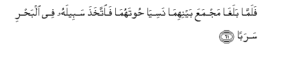 61. Falamma balagha majmaAAa baynihima nasiya hootahuma faittakhatha sabeelahu fee albahri saraban