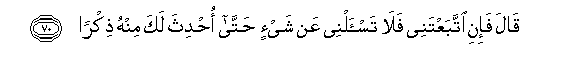70. Qala fa-ini ittabaAAtanee fala tas-alnee AAan shay-in hatta ohditha laka minhu thikran