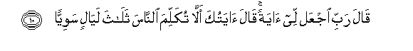 10. Qala rabbi ijAAal lee ayatan qala ayatuka alla tukallima alnnasa thalatha layalin sawiyyan