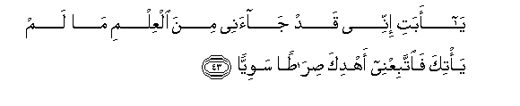 43. Ya abati innee qad jaanee mina alAAilmi ma lam ya/tika faittabiAAnee ahdika siratan sawiyyan