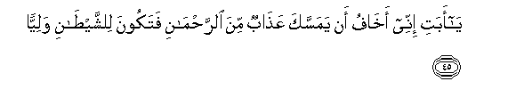 45. Ya abati innee akhafu an yamassaka AAathabun mina alrrahmani fatakoona lilshshyatani waliyyan