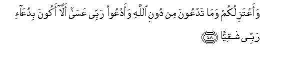 48. WaaAAtazilukum wama tadAAoona min dooni Allahi waadAAoo rabbee AAasa alla akoona biduAAa-i rabbee shaqiyyan