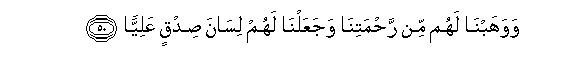 50. Wawahabna lahum min rahmatina wajaAAalna lahum lisana sidqin AAaliyyan