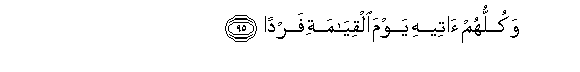 95. Wakulluhum ateehi yawma alqiyamati fardan