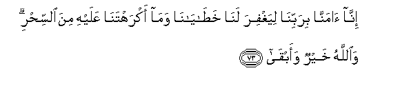 73. Inna amanna birabbina liyaghfira lana khatayana wama akrahtana AAalayhi mina alssihri waAllahu khayrun waabqa