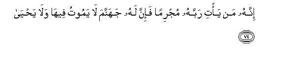 74. Innahu man ya/ti rabbahu mujriman fa-inna lahu jahannama la yamootu feeha wala yahya