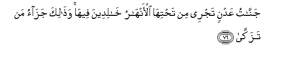 76. Jannatu AAadnin tajree min tahtiha al-anharu khalideena feeha wathalika jazao man tazakka