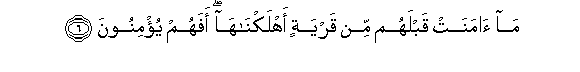 6. Ma amanat qablahum min qaryatin ahlaknaha afahum yu/minoona